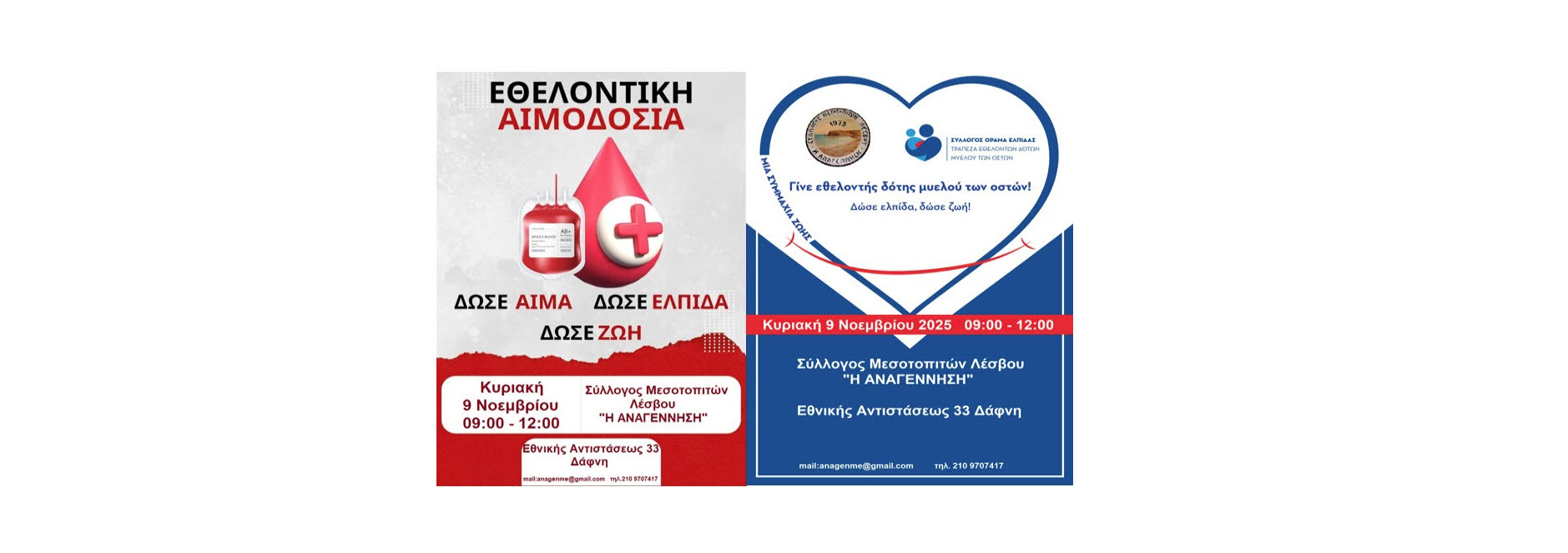 Ο Σύλλογος Μεσοτοπιτών Λέσβου “η Αναγέννηση” από 09:00 έως 12:00 θα πραγματοποιήσει Διπλή δράση….
