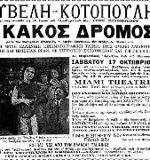 ‘’Ο Κακός δρόμος’’ δεν είναι ένα δικό μου ευφυολόγημα, αλλά ο τίτλος μιας ταινίας ίας που γυρίστηκε το καλοκαίρι του 1933, με εξωτερικά γυρίσματα σε τρία διαφορετικά μέρη – την Κωνσταντινούπολη, την Αθήνα και την Ζάκυνθο. Ήταν μια εποχή Ελληνοτουρκικών χαριεντισμών που πλαισίωσαν το Ελληνοτουρκικό σύμφωνο Βενιζέλου – Ινονού που υπεγράφη το 1930.