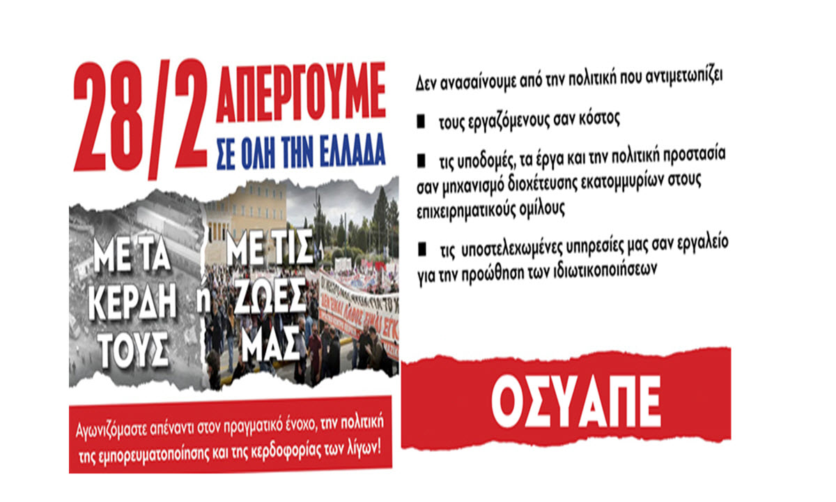 ΣΥΝΕΧΙΖΟΥΜΕ ΤΟΝ ΑΓΩΝΑ ΜΕ ΤΗΝ ΓΕΝΙΚΗ ΑΠΕΡΓΙΑ ΣΤΙΣ 28 ΦΛΕΒΑΡΗ