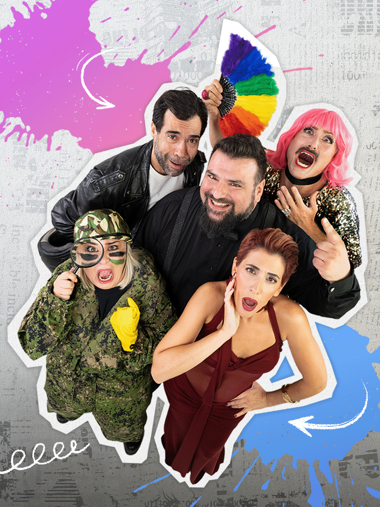 Μία drag queen σε παραλήρημα, μία συνωμοσιολόγοςπου «ξέρει τι μας κρύβουν», μία influencer σε κρίση ταυτότητας και ένας ωμός ρεαλιστής με «λαϊκή σοφία», δέχονται την πρόκληση.