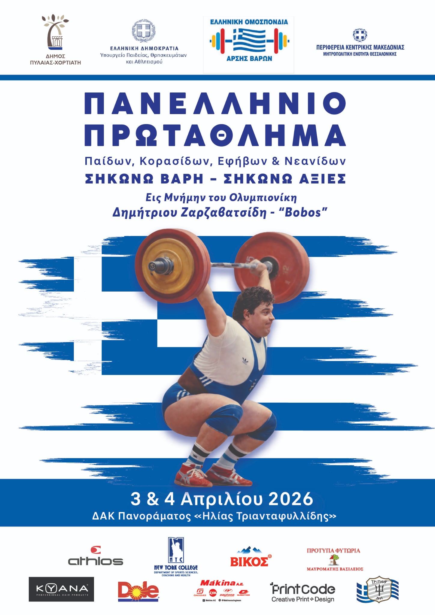 «Η Ελληνική Ομοσπονδία Άρσης Βαρών καλωσορίζει όλους τους νεαρούς αθλητές και αθλήτριες στο Πανελλήνιο Πρωτάθλημα Εφήβων-Νεανίδων και Παίδων – Κορασίδων που θα γίνει στο φιλόξενο ΔΑΚ Πανοράματος. Είμαι σίγουρη ότι η νέα γενιά του αθλήματος, θα αποδείξει ότι η ελληνική άρση βαρών έχει λαμπρό μέλλον. Οι αγώνες είναι αφιερωμένοι στη μνήμη του αείμνηστου Ολυμπιονίκη και Πανεπιστημιακού Καθηγητή, Δημήτρη Ζαρζαβατσίδη και αποτελούν τον ελάχιστο φόρο τιμής σε έναν άνθρωπο που υπηρέτησε με ήθος, συνέπεια και αφοσίωση τόσο τον αθλητισμό όσο και την επιστήμη. Θα ήθελα να εκφράσω τις θερμές μας ευχαριστίες προς τον Δήμαρχο Πυλαίας Χορτιάτη Ιγνάτιο Καϊτεζίδη και τον Αντιπεριφερειάρχη Μητροπολιτικής Ενότητας Θεσσαλονίκης Κωνσταντίνο Γιουτίκα για τη στήριξη και τη συμβολή τους στη διοργάνωση των αγώνων. Η παρουσία και η υποστήριξή σας αναδεικνύουν έμπρακτα το ενδιαφέρον της Τοπικής Αυτοδιοίκησης για την ανάπτυξη του αθλητισμού και την ανάδειξη των προτύπων που εμπνέουν τη νέα γενιά. Ας αποτελέσουν οι αγώνες αυτοί πηγή έμπνευσης για όλους τους αθλητές και τις αθλήτριες, ώστε να συνεχίσουν με πίστη, επιμονή και ήθος την πορεία τους, κρατώντας ζωντανές τις αξίες που πρεσβεύει ο αθλητισμός».