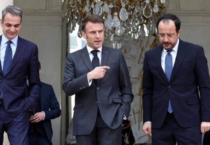 «Η επίσκεψη του προέδρου Μακρόν στην Πάφο εκφράζει την αλληλεγγύη της Γαλλίας προς την Κύπρο, κράτος μέλος της Ευρωπαϊκής Ένωσης, με την οποία έχουμε συμφωνία στρατηγικής σημασίας και η οποία χτυπήθηκε την προηγούμενη εβδομάδα από πολλά drones και πυραύλους». Αυτά αναφέρουν κύκλοι προσκείμενοι στο Ελιζέ αναφερόμενοι στη σημερινή επίσκεψη του Προέδρου της Γαλλικής Δημοκρατίας Εμανουέλ Μακρόν στο νησί, όπου θα συναντηθεί με τον Πρόεδρο της Κύπρου Νίκο Χριστοδουλίδη και τον πρωθυπουργό της Ελλάδας Κυριάκο Μητσοτάκη.