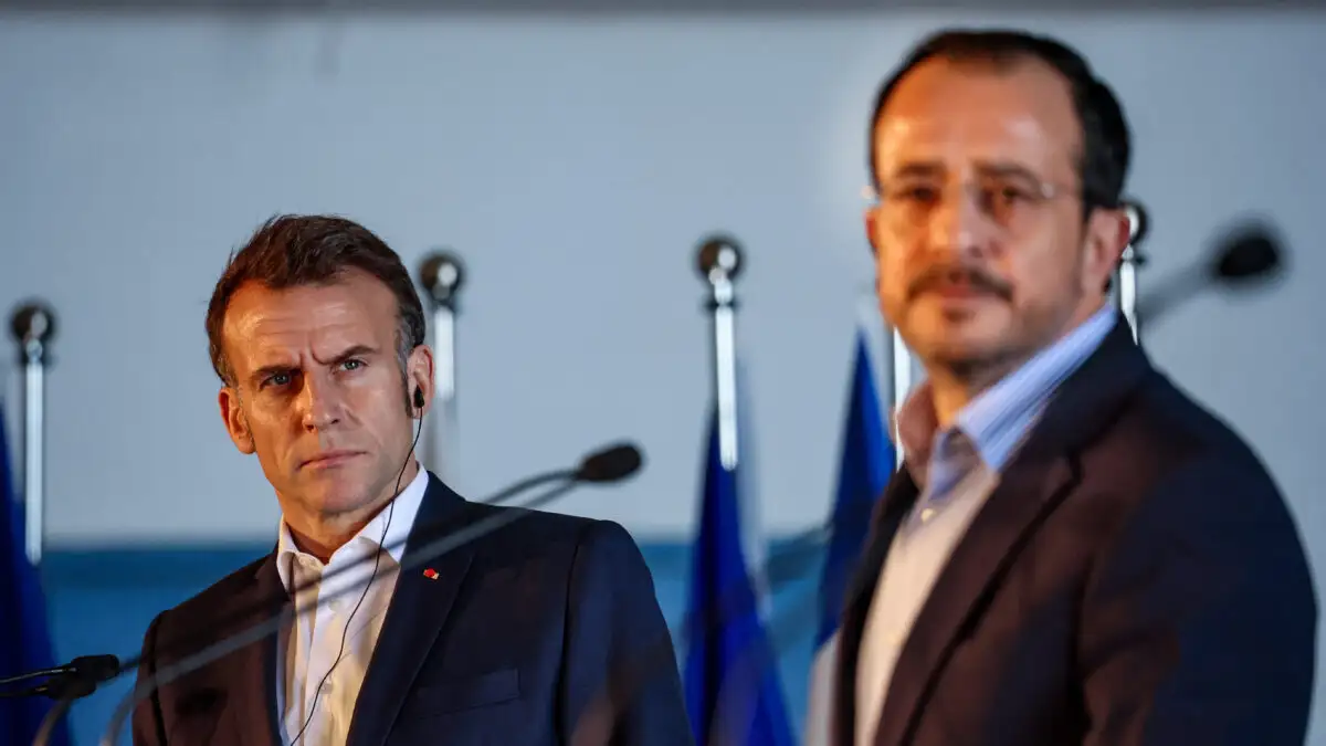Νωρίτερα, ο Γάλλος πρόεδρος βρέθηκε στην Πάφος, όπου συμμετείχε σε τριμερή συνάντηση με τον πρωθυπουργό της Ελλάδας Κυριάκος Μητσοτάκης και τον πρόεδρο της Κυπριακής Δημοκρατίας Νίκος Χριστοδουλίδης.