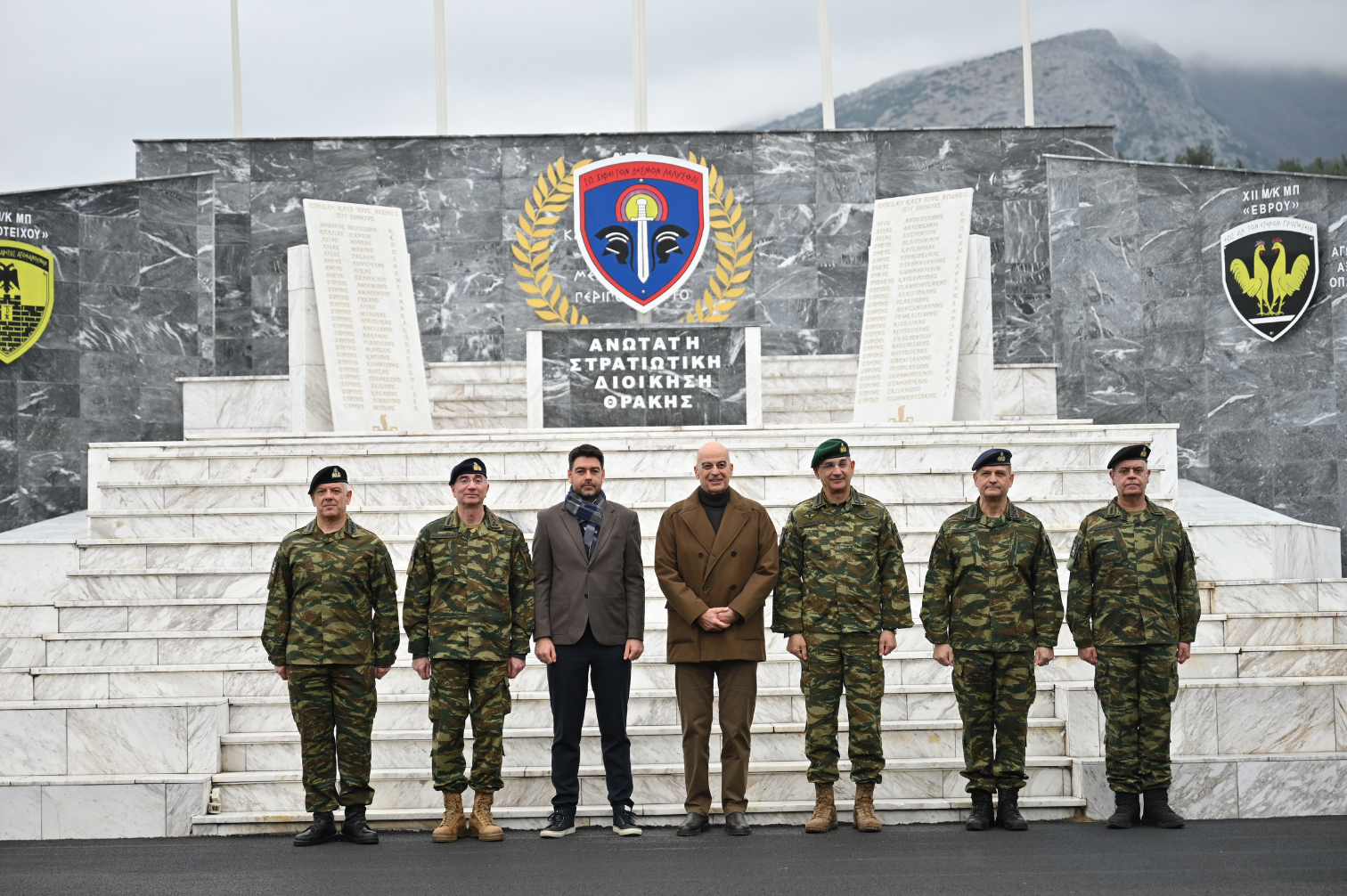 Ο Υπουργός Εθνικής Άμυνας, Νίκος Δένδιας, συνοδευόμενος από τον Αρχηγό ΓΕΕΘΑ Στρατηγό Δημήτριο Χούπη, παρουσία του Διοικητή της 1ης Στρατιάς/EU-OHQ «ΑΧΙΛΛΕΑΣ» Αντιστράτηγου Σταύρου Παπασταθόπουλου και του Διοικητή της Ανώτατης Στρατιωτικής Διοίκησης Θράκης, Αντιστράτηγου Παναγιώτη Καβιδόπουλου, επισκέφθηκε την Τετάρτη 24 Δεκεμβρίου 2025, με την ευκαιρία των εορτών των Χριστουγέννων και της Πρωτοχρονιάς, το 316 Συνεργείο Περιοχής Τεχνικού στους Τοξότες Ξάνθης και την έδρα της Ανώτατης Στρατιωτικής Διοίκησης Θράκης, (ΑΣΔΙΘ). Κατά την επίσκεψή του στο 316 ΣΠΤΧ, ο κ. Δένδιας άκουσε παραδοσιακά χριστουγεννιάτικα κάλαντα της Θράκης και της Κέρκυρας από τη χορωδία της Ταξιαρχίας Υποστήριξης (ΤΑΞΥΠ), ενώ είχε την ευκαιρία να περιηγηθεί στους χώρους του Συνεργείου, να συνομιλήσει, όπως και να ανταλλάξει ευχές, με τα στελέχη και τους οπλίτες θητείας.
