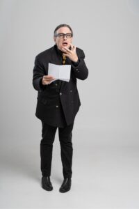 Ένα one dead man show, ένας black total κωμικός μονόλογος με δεκατρείς ρόλους. Δεκατρείς κωμικούς επικήδειους που και νεκρούς ανασταίνουν!