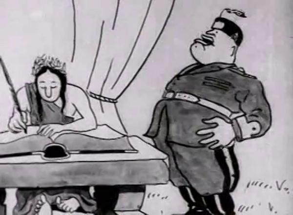 Αξίζει όμως να κάνουμε μια ειδική αναφορά σε μια ιδιαίτερη ταινία που δημιουργήθηκε μέσαφ στις φλόγες του πολέμου και ήταν η πρώτη Ελληνική ταινία κινουμένων σχεδίων. Ο Σταμάτης Πολενάκης (1908-1997), ένας από τους κορυφαίους έλληνες σκιτσογράφους του 20ου αιώνα και πρωτοπόρος του κινούμενου σχεδίου στη χώρα μας, σατιρίζει την εισβολή των Ιταλών στην Ελλάδα στις 28 Οκτωβρίου κμαι ειδικά τον Μουσολίνι, ο οποίος αφηγείται τα κατορθώματά του, αλλά η πραγματικότητα συνεχώς τον διαψεύδει.